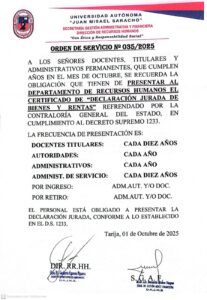 - Presentar Certificado de Declaración Jurada de Bienes y Rentas (oct)