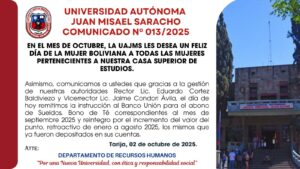 - Felicitación por día de la mujer Boliviana, Pago de salarios.