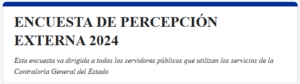 Se solicita a todo el personal administrativo de nivel Técnico llenar la encuesta de percepción sobre los servicios que brinda la Contraloría General del Estado través del siguiente enlace: https://forms.gle/cs7Hfc6tuE3a3afF7