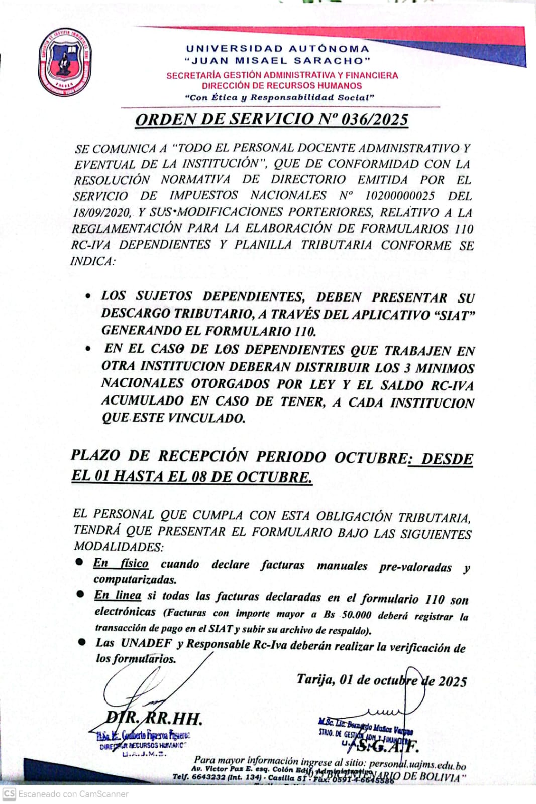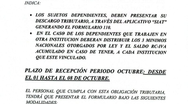Plazo y condiciones de presentación de Formulario 110 RC-IVA (oct)