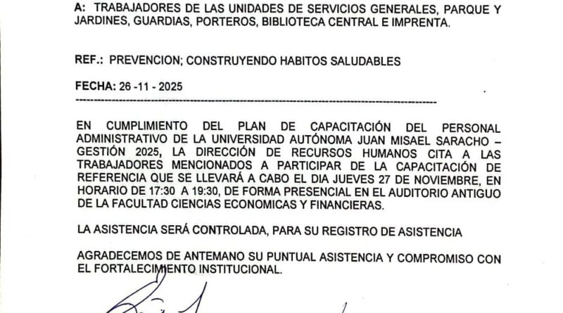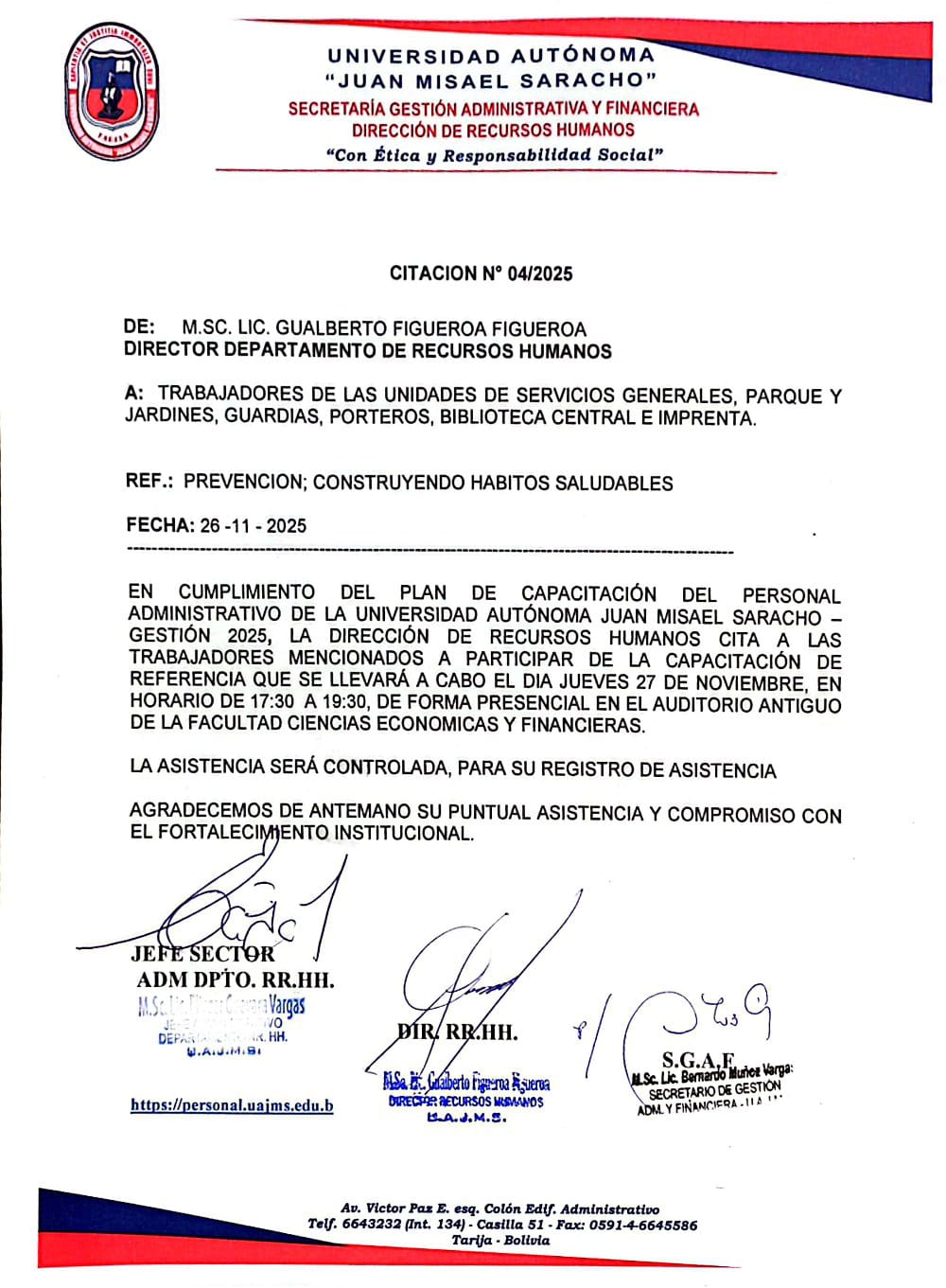 Citación N° 04/2025. Capacitación específica para Servicios Generales, Parques y Jardines, Guardias, Porteros, Biblioteca e Imprenta,