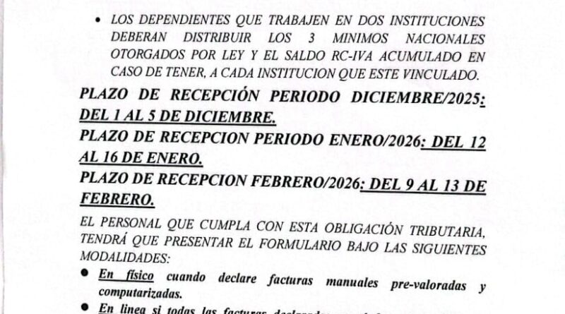 Plazo y condiciones de presentación de Formulario 110 RC-IVA (dic)