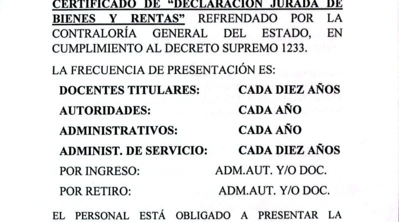 ORDEN DE SERVICIOSin categoría 2 de marzo de 2026 Presentar Certificado de Declaración Jurada de Bienes y Rentas (marzo 2026) Orden de Servicio N° 004/26 Leer más