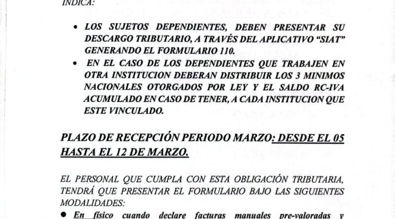 ORDEN DE SERVICIO 2 de marzo de 2026 Plazo y condiciones de presentación de Formulario 110 RC-IVA (marzo 2026) Orden de Servicio N° 006/2026 Leer más