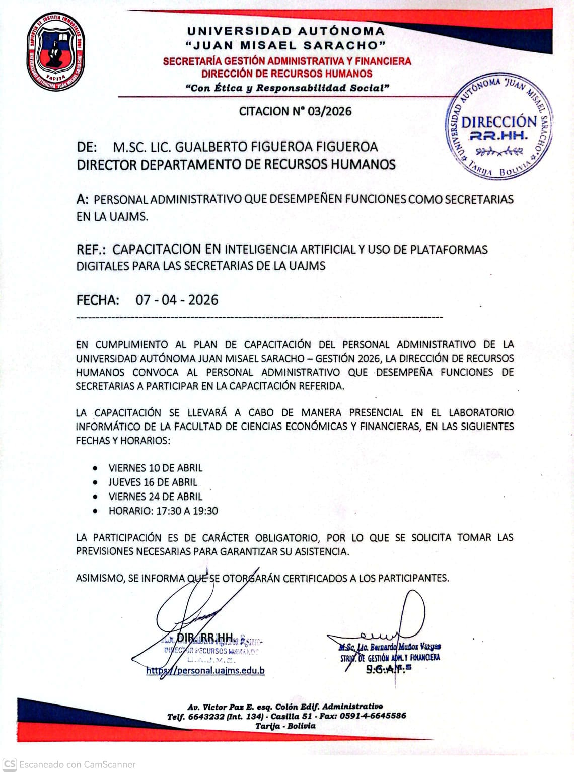 Recursos Humanos UAJMS