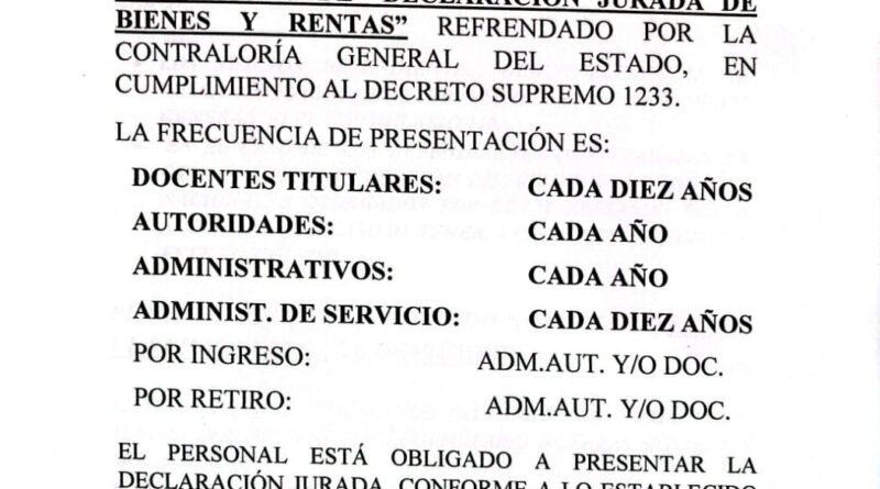 Leer másOrden de Servicio N° 035/2025 Se especifica frecuencia de presentación de Certificado de Declaración Jurada de Bienes y Rentas: Docentes