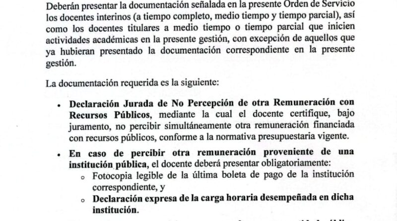 Orden de Servicio 07/26. Los docentes titulares a medio tiempo y tiempo parcial, así como todos los docentes interinos, deben